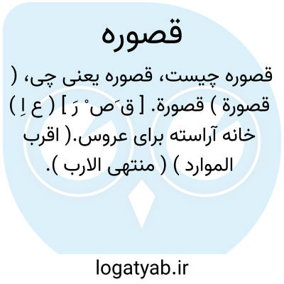 ( قصورة ) قصورة. [ ق َص ْ رَ ] ( ع اِ ) خانه آراسته برای عروس.( اقرب الموارد ) ( منتهی الارب ). حجله عروس. ( اقرب الموارد ). || ( ص ) قصیرة. ( منتهی الارب ) ( اقرب الموارد ): امراءة قصورة؛ ای قصیرة. ( منتهی الارب ).