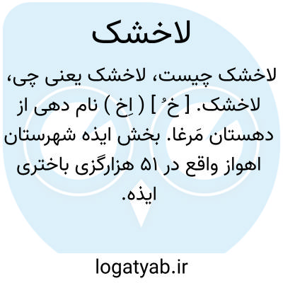 لاخشک. [ خ ُ ] ( اِخ ) نام دهی از دهستان مَرغا. بخش ایذه شهرستان اهواز واقع در 51 هزارگزی باختری ایذه. کوهستانی. معتدل. زبان اهالی فارسی بختیاری و محصول آنجا غلات و راه آن مالرو است و 185 تن سکنه دارد. ( فرهنگ جغرافیائی ایران ج 6 ).