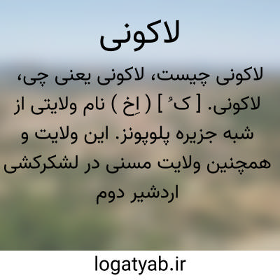 لاکونی. [ ک ُ ] ( اِخ ) نام ولایتی از شبه جزیره پلوپونز. این ولایت و همچنین ولایت مسنی در لشکرکشی اردشیر دوم به آسیای صغیر و لاسدمون بدست فرناباذ در بهار سال ( 393 ق.م. ) بتلافی غارت ها و خرابیهایی که لاسدمونیها در آسیای صغیر کرده بودند غارت شد. نیز رجوع به لاکونیا شود. ( ایران باستان ج 1 ص 1113 ).