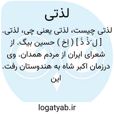لذتی. [ ل َذْ ذَ ] ( اِخ ) حسین بیگ. از شعرای ایران از مردم همدان. وی درزمان اکبر شاه به هندوستان رفت. این بیت او راست: