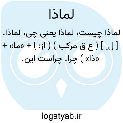لماذا. [ ل ِ ] ( ع ق مرکب ) ( از: اِ + «ما» + «ذا» ) چرا. چراست این.