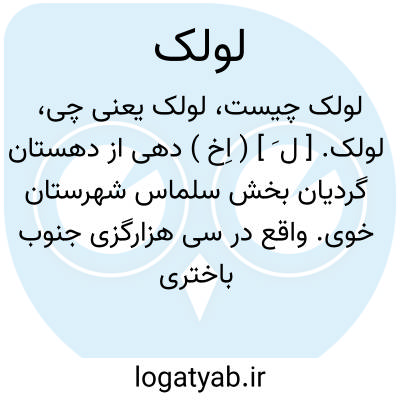لولک. [ ل َ ] ( اِخ ) دهی از دهستان گردیان بخش سلماس شهرستان خوی. واقع در سی هزارگزی جنوب باختری سلماس. دره و سردسیر. دارای 70 تن سکنه. آب آن از چشمه. محصول آنجا غلات. شغل اهالی زراعت و گله داری و صنایع دستی آنان جاجیم بافی و راه آن مالرو است. ( از فرهنگ جغرافیائی ایران ج 4 ).