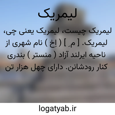 لیمریک. [ م ِ ] ( اِخ ) نام شهری از ناحیه ایرلند آزاد ( منستر ) بندری کنار رودشانن. دارای چهل هزار تن سکنه و آن کرسی ناحیتی است به همین نام که 140000 تن سکنه دارد. || ناحیتی از ایرلند آزاد، کرسی آن نیز همین نام دارد.