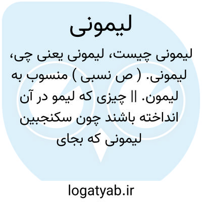 ( صفت ) ۱- منسوب به لیمون.۲- چیزی که لیمو در آن انداخته باشند چون سکنجبین لیمونی که بجای سرکه در آن لیمو اندازند.