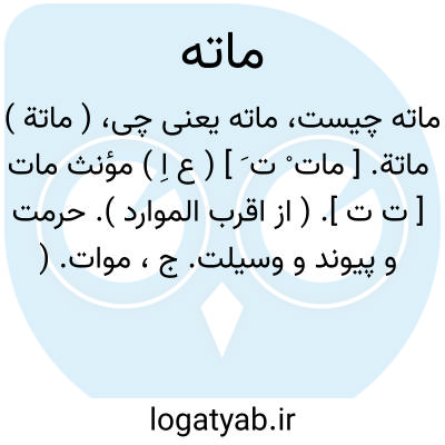 ( ماتة ) ماتة. [ مات ْ ت َ ] ( ع اِ ) مؤنث مات [ ت ت ]. ( از اقرب الموارد ). حرمت و پیوند و وسیلت. ج، موات. ( ناظم الاطباء ) ( آنندراج ) ( منتهی الارب ).