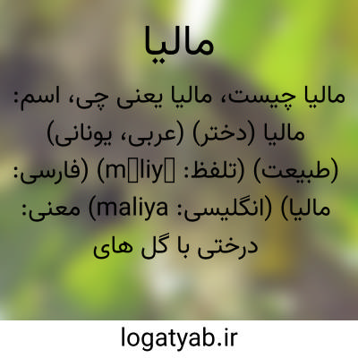 اسم: مالیا (دختر) (عربی، یونانی) (طبیعت) (تلفظ: māliyā) (فارسی: ماليا) (انگلیسی: maliya)