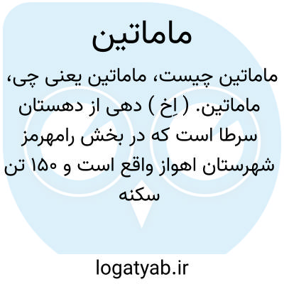ماماتین. ( اِخ ) دهی از دهستان سرطا است که در بخش رامهرمز شهرستان اهواز واقع است و 150 تن سکنه دارد. ( از فرهنگ جغرافیایی ایران ج 6 ).