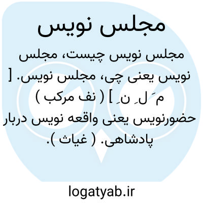 مجلس نویس. [ م َ ل ِ ن ِ ] ( نف مرکب ) حضورنویس یعنی واقعه نویس دربار پادشاهی. ( غیاث ). حضورنویس. محمد نصیرآبادی در احوال میرزا طاهر وحید نوشته: که چون جوهر قابلیت از جبهه اش نمایان بود به صوابدید نواب خلیفه سلطان به منصب مجلس نویسی سرافرازی یافت. و چون ایشان را در جای دیگر به واقعه نویس یاد کرده از اینجا معلوم میشود که مجلس نویسی و واقعه نویسی یکی است. ( آنندراج ). واقعه نویس. کسی که پس از وزیر اعظم از همه درباریان دوره صفوی با شخص شاه محرم تر بود و به همین سبب او را «عالیجاه مقرب الخاقان » می خواندند. در مجالس خاص و عام نزدیک شاه می نشست و در شوراهای سلطنتی شرکت می جست و چون تمام احکام شاهی بوسیله او نوشته و اجرا می شد. ازهمه اسرار دولتی آگاه بود. جواب نامه های پادشاهان بیگانه را او انشا می کرد. احکام مناصب و مواجب و تیول و غیره را او می نوشت. عرایض امرا و حکام را که از ولایات می رسید، او به عرض شاه می رسانید و جواب آنها را به دستور شاه تهیه می کرد. وی در مجلس شاه در جانب چپ او می نشست و به همین سبب گاه او را وزیر چپ می گفتند. ( زندگانی شاه عباس تألیف نصراﷲ فلسفی، ج 2 ص 406 ). || کاتب و محرر انجمن. ( ناظم الاطباء ).