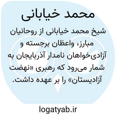 [ویکی شیعه] شیخ محمد خیابانی، (۱۲۹۷- ۱۳۳۸ق) روحانی مبارز، واعظ و آزادی خواه و رهبر "نهضت آزادیستان" در آذربایجان است. عمده شهرت وی به خاطر قیام علیه وثوق الدوله است. خیابانی افکاری مترقی داشت و در جهت استقلال و آزادی مملکت تلاش می کرد. او در مجلس عضو حزب دموکرات بود. روزنامه تجدد زیر نظر او منتشر می شد. قیام وی با کشته شدن وی به پایان رسید.