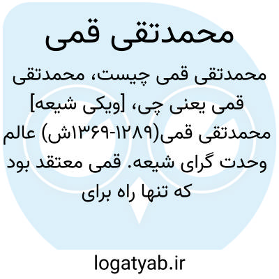 [ویکی شیعه] محمدتقی قمی(۱۲۸۹-۱۳۶۹ش) عالم وحدت گرای شیعه. قمی معتقد بود که تنها راه برای ایجاد امت واحد اسلامی، اتحاد فرهنگی مسلمانان است که این امر نیز از طریق گفتگوی عالمان مذاهب اسلامی حاصل می شود. به همین منظور، وی «دارالتقریب بین المذاهب الاسلامیة» را تاسیس نمود. از مهمترین آثار فعالیت قمی، به رسمیت شناخته شدن مذهب شیعه از سوی دانشگاه الأزهر مصر بود. وی در هشتاد سالگی در پاریس بر اثر تصادف از دنیا رفت.