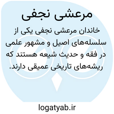 [ویکی فقه] مرعشی نجفی (ابهام زدایی). مرعشی نجفی ممکن است اشاره به اشخاص و شخصیت های ذیل باشد: • سیدشمس الدین محمود مرعشی نجفی، از علمای قرن سیزدهم و چهاردهم هجری قمری و پدر آیت الله سید شهاب الدین مرعشی نجفی• سید شهاب الدین مرعشی نجفی، از علما و مراجع تقلید معاصر شیعه و صاحب کتابخانه مشهور مرعشی نجفی