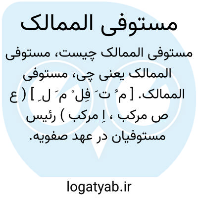 ( اسم ) ۱- متصدی مالیه کشور ( صفویان ) توضیح در عهد صفویه وزیر اعظم که مستوفی الممالک تحت نظروی بکار مشغول بود شخصا وزیر دارایی محسوب می گردید. اما ذر واقع بیشتر امور فنی مالی مانند حسابداری و ممیزی و تنظیم بودجه برعهده مستوفی الممالک بود. اساسا مستوفی ممالک نظارت داشت. اعضای مهم زیردست مستوفی الممالک عبارت بودند از: ناظر داروغه دفتر خانه صاحب توجیه ضابطه نویس اوراجه نویس. مستوفی الممالک انتصاب کلیه مستوفیان را تحت نظارت داشت و دستورالعمل برای ماموران یا عمال مالی مقیم ولایات می نوشت. ۲- وزیر دارایی ( قاجاریه ) خزانه دار کشور ( قاجاریه ).