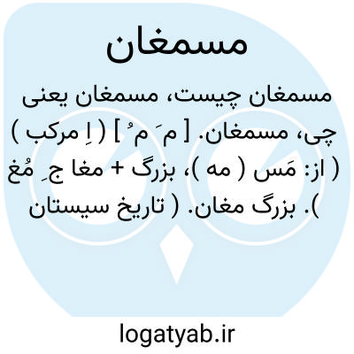 مسمغان. [ م َ م ُ ] ( اِ مرکب ) ( از: مَس ( مه )، بزرگ + مغا ج ِ مُغ ). بزرگ مغان. ( تاریخ سیستان ص 319 ). عنوان بزرگترین پیشوای دینی در آئین زرتشتی. ( خرده اوستا ص 165 ). رئیس المجوس. ( التفهیم ص 258 ). مصمغان. ( سبک شناسی ج 3 ص 75 ).