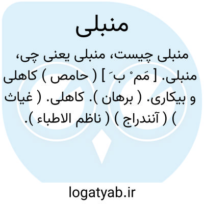 منبلی. [ مَم ْ ب َ ] ( حامص ) کاهلی و بیکاری. ( برهان ). کاهلی. ( غیاث ) ( آنندراج ) ( ناظم الاطباء ). || بی اعتقادی و انکار. ( برهان ) ( ناظم الاطباء ). بداعتقادی و منکری. ( غیاث ) ( آنندراج ):