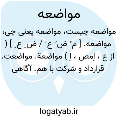 ۱ - ( مصدر ) با یکدیگر قرار نهادن قرار گذاشتن: [ پس بعضی از ایشان اعتراف نمودند و تمامی مواضعت و مبایعت خویش مقرر گردانید و دیگران بضرورت اقتدا کردند.. ] ( کلیله. مصحح مینوی ۲ ) ۳۲۴ - متارکه کردن خرید و فروش. ۳ - سازواری کردن موافقت کردن. ۴ - ( اسم ) قرار گذاری. ۵ - متارکه خرید و فروش. ۶ - سازواری موافقت. ۷ - ( اسم ) قرار داد جمع: مواضعات.