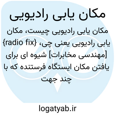 {radio fix} [مهندسی مخابرات] شیوه ای برای یافتن مکان ایستگاه فرستنده که با چند جهت یابی رادیویی صورت می گیرد و مکان مورد نظر، محل تقاطع این جهت های رادیویی است