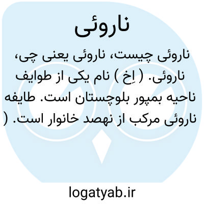 ناروئی. ( اِخ ) نام یکی از طوایف ناحیه بمپور بلوچستان است. طایفه ناروئی مرکب از نهصد خانوار است. ( از جغرافیای سیاسی کیهان ص 100 ).