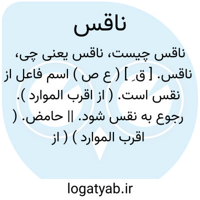 ناقس. [ ق ِ ] ( ع ص ) اسم فاعل از نقس است. ( از اقرب الموارد ). رجوع به نقس شود. || حامض. ( اقرب الموارد ) ( از معجم متن اللغة ) ( المنجد ). ترش و حامض. ( ناظم الاطباء ). شراب ترش. ( منتهی الارب ) ( آنندراج ). یقال: لبن ناقس و شراب ناقس؛ حامض. ( المنجد ). شراب ترش. ( مهذب الاسماء ).