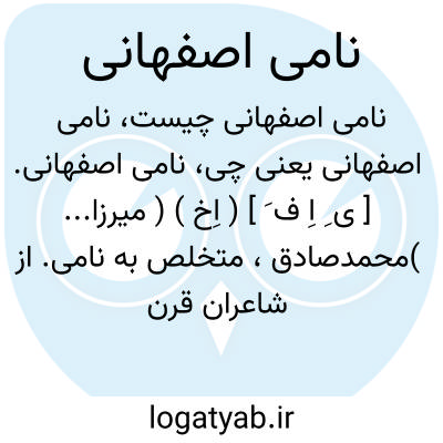 نامی اصفهانی. [ ی ِ اِ ف َ ] ( اِخ ) ( میرزا... )محمدصادق، متخلص به نامی. از شاعران قرن سیزدهم است، و به روایت هدایت در مجمع الفصحاء، وی به فنون نظم و نثر رغبت داشته و تاریخی مشتمل بر وقایع دولت کریم خان وکیل و دیگران نگاشته و منشیانه عبارت پردازی کرده است... در فن نظم به مثنوی سرائی راغب بوده، قصد تتبع خمسه داشته، سه مثنوی به نامهای: خسرو و شیرین، وامق و عذرا و لیلی و مجنون به نظم درآورده است. وی به دوران سلطنت نادرشاه درگذشت. آذر در آتشکده این ابیات را از مثنوی خسرو و شیرین وی نقل کرده است: