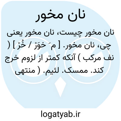نان مخور. [ م َ خوَرْ / خُرْ ] ( نف مرکب ) آنکه کمتر از لزوم خرج کند. ممسک. لئیم. ( منتهی الارب ). || تنگ دست. ( ناظم الاطباء ). رجوع به نان نخور شود.