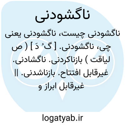 ناگشودنی. [ گ ُ دَ ] ( ص لیاقت ) بازناکردنی. ناگشادنی. غیرقابل افتتاح. بازناشدنی. || غیرقابل ابراز و اظهار. ابراز ناکردنی. فاش ناکردنی.