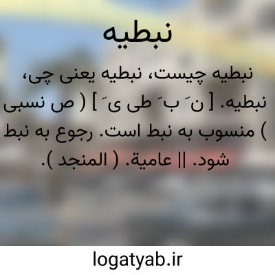 نبطیه. [ ن َ ب َ طی ی َ ] ( ص نسبی ) منسوب به نبط است. رجوع به نبط شود. || عامیة. ( المنجد ).
