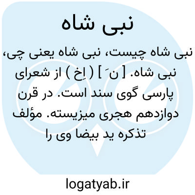 نبی شاه. [ ن َ ] ( اِخ ) از شعرای پارسی گوی سند است. در قرن دوازدهم هجری میزیسته. مؤلف تذکره ید بیضا وی را به سال 1145 هَ.ق. در سنین پیری ملاقات کرده است. به نقل مؤلف مقالات الشعراء وی مردی جهانگرد و مایل به سیاحت بوده،زنش نیز چون او علیحده گرم سیر و سفر، «گاهی با هم دوچار می شدند، از قصیده و غزل و رباعی و مثنوی هفتادهزار بیت به زبان پارسی گفته، اما معلوم نمی شود که عربی است یا فارسی است یا ترکی، از بس اغلاق، اکثر معانی ابیات خود از صاحب طبعان دیگر میپرسد»! او راست: