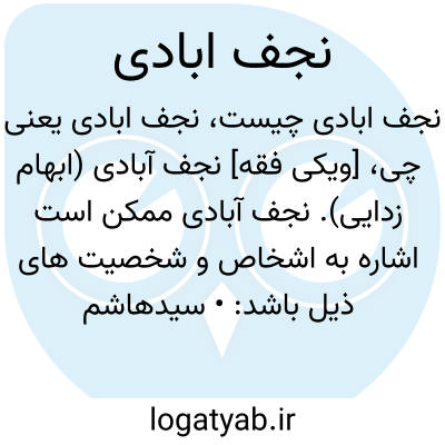 [ویکی فقه] نجف آبادی (ابهام زدایی). نجف آبادی ممکن است اشاره به اشخاص و شخصیت های ذیل باشد: • سیدهاشم میردامادی نجف آبادی، از علمای قرن چهاردهم هجری قمری• سیدعلی مجتهد نجف آبادی، از علمای قرن چهاردهم هجری قمری• محمدحسین نجفی دولت آبادی، از علمای شیعه در عصر حاضر