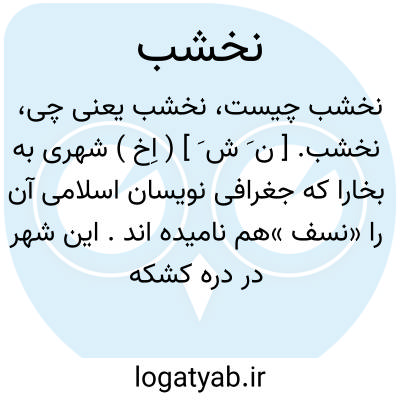 نخشب. [ ن َ ش َ ] ( اِخ ) شهری به بخارا که جغرافی نویسان اسلامی آن را «نسف »هم نامیده اند. این شهر در دره کشکه دریا قرار داشته است، نخشب در جاده بخارا به بلخ، به مسافت چهارروزه راه از بخارا و هشت روزه از بلخ، واقع بوده است. ( از حاشیه برهان قاطع چ معین ). نام شهری است از ترکستان که آن را به ترکی قَرْشی گویند. ( برهان قاطع ). شهری است به صغد. ( دمشقی ). نسف. ( دمشقی ) ( منتهی الارب ). شهری است [ به ماوراءالنهر ]، بسیارنعمت و آبادان و با کشت و برز بسیار و او را یک رود است که اندر میان شهر بگذرد. ( حدود العالم ). شهری نزدیک بخارا. ( ابن بطوطه ). شهری است به ماوراءالنهر معروف که از آنجاتا شهر کش دوروزه راه باشد و تا بخارا و سمرقند سه روزه راه، و آن را نسف نیز گویند و همانا نسف معرب نخشب است. ( از انجمن آرا ) ( از آنندراج ). از بلاد ماورأالنهر و مابین جیحون و سمرقند و تاشکند، در 150هزارگزی بخارا واقع است، شهری بزرگ و پرجمعیت است و دهات بسیاری دارد، و آن بزرگترین و معمورترین و زیباترین ِ بلاد ماوراءالنهر است. نام دیگر آن نسف است و در این اواخر به قارشی معروف گشته به مناسبت نهر قارشی که ازوسط آن می گذرد. ( ریحانةالادب ج 4 ص 179 ):