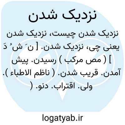 نزدیک شدن. [ ن َ ش ُ دَ ] ( مص مرکب ) رسیدن. پیش آمدن. قریب شدن. ( ناظم الاطباء ). ولی. اقتراب. دنو. ( ترجمان القرآن ). تقرب. ( تاج المصادر بیهقی ). مقابل دور شدن: