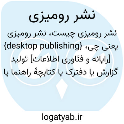 {desktop publishing} [رایانه و فنّاوری اطلاعات] تولید گزارش یا دفترک یا کتابچۀ راهنما یا هرنوع متن چاپی با استفاده از رایانه های رومیزی و دستگاه های جانبی دفتری