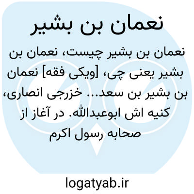 [ویکی فقه] نعمان بن بشیر بن سعد... خزرجی انصاری، کنیه اش ابوعبدالله. در آغاز از صحابه رسول اکرم (صلی الله علیه و آله وسلّم) و از انصار و در آخر کار، عامل یزیدبن معاویه در کوفه و از دشمنان اهل بیت.