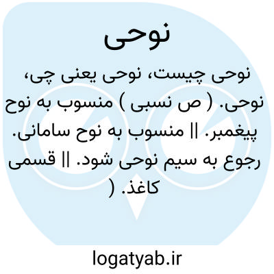 نوحی. ( ص نسبی ) منسوب به نوح پیغمبر. || منسوب به نوح سامانی. رجوع به سیم نوحی شود. || قسمی کاغذ. ( ابن ندیم از یادداشت مؤلف ). نام قسمی کاغذ در قدیم، منسوب به یکی از دو نوح پادشاه سامانی. ( یادداشت مؤلف ).