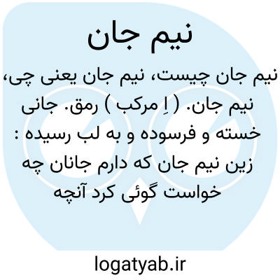 نیم جان. ( اِ مرکب ) رمق. جانی خسته و فرسوده و به لب رسیده: