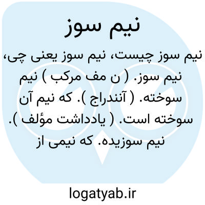 نیم سوز. ( ن مف مرکب ) نیم سوخته. ( آنندراج ). که نیم آن سوخته است. ( یادداشت مؤلف ). نیم سوزیده. که نیمی از آن باقی است و نیم دیگر سوخته و معدوم شده است: