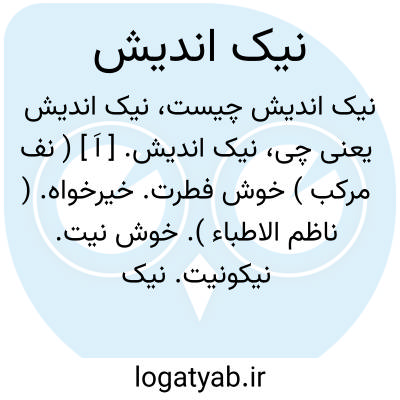 نیک اندیش. [ اَ ] ( نف مرکب ) خوش فطرت. خیرخواه. ( ناظم الاطباء ). خوش نیت. نیکونیت. نیک خواه: