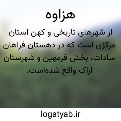 از شهرهای تاریخی و کهن استان مرکزی است که در دهستان فراهان سادات، بخش فرمهین و شهرستان اراک واقع شده‌است. این شهر با ۲۷۳۶ نفر جمعیت، از دیرباز به‌عنوان یکی از نقاط مهم و پررونق منطقه شناخته می‌شود. اقتصاد هزاوه بر پایه کشاورزی استوار است و آب مورد نیاز برای آبیاری از طریق قنات‌ها تأمین می‌گردد. محصولات عمده این منطقه شامل انگور، غلات و انواع میوه‌هاست که در کنار چشمه‌سارهای متعدد و آب‌وهوای مطبوع، جلوه‌ای سرسبز و دل‌انگیز به آن بخشیده‌است.