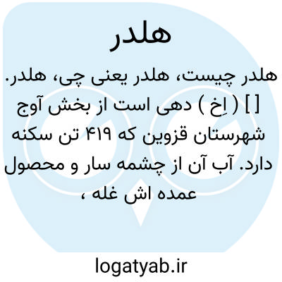 هلدر. [ ] ( اِخ ) دهی است از بخش آوج شهرستان قزوین که 419 تن سکنه دارد. آب آن از چشمه سار و محصول عمده اش غله، سیب زمینی، عسل، انگور و زردآلو و کاردستی مردم بافتن قالی، گلیم و جاجیم است. در تابستان ایل بغدادی به حدود کوههای هلدر می آیند. ( از فرهنگ جغرافیائی ایران ج 1 ).