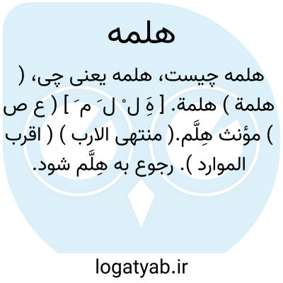 ( هلمة ) هلمة. [ هَِ ل ْ ل َ م َ ] ( ع ص ) مؤنث هِلَّم.( منتهی الارب ) ( اقرب الموارد ). رجوع به هِلَّم شود.