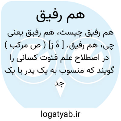 هم رفیق. [ هََ رَ] ( ص مرکب ) در اصطلاح علم فتوت کسانی را گویند که منسوب به یک پدر یا یک جد باشند. رجوع به هم پدر شود.