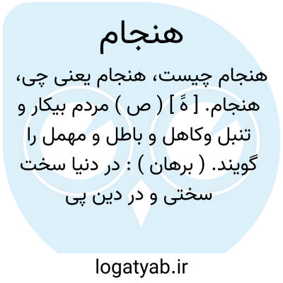 هنجام. [ هََ ] ( ص ) مردم بیکار و تنبل وکاهل و باطل و مهمل را گویند. ( برهان ):