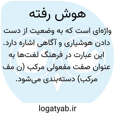 هوش رفته. [ رَ ت َ / ت ِ ] ( ن مف مرکب ) بیهوش. ازهوش شده. مقابل بهوش: