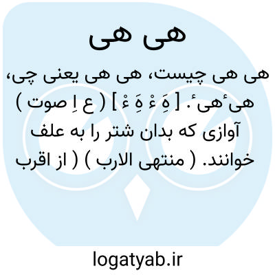 هی هی. [ هَِ هَِ ] ( اِخ ) دهی است از دهستان مزرج بخش حومه شهرستان قوچان. دارای 463 تن سکنه است. ( از فرهنگ جغرافیایی ایران ج 9 ).
