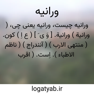 ( ورانیة ) ورانیة. [ وَ ی َ ] ( ع اِ ) کون. ( منتهی الارب ) ( آنندراج ) ( ناظم الاطباء ). اِست. ( اقرب الموارد ) ( ناظم الاطباء ).