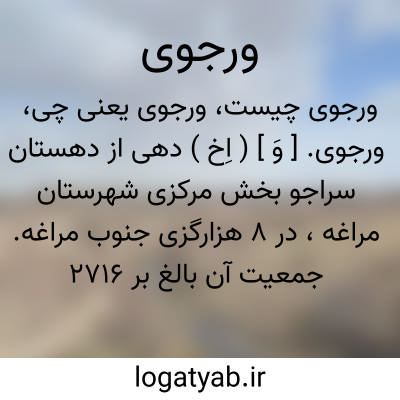 ورجوی. [ وَ ] ( اِخ ) دهی از دهستان سراجو بخش مرکزی شهرستان مراغه، در 8 هزارگزی جنوب مراغه. جمعیت آن بالغ بر 2716 تن است و آب آن از رودخانه ٔچکان و قنات است. ( از فرهنگ جغرافیایی ایران ج 4 ).