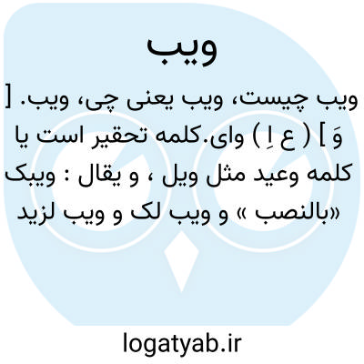 ویب. [ وَ ] ( ع اِ ) وای.کلمه تحقیر است یا کلمه وعید مثل ویل، و یقال: ویبک «بالنصب » و ویب لک و ویب لزید «بالرفع» و ویباً له و ویب غیره «بالجر» و ویب زید «بالنصب و الجر» و ویب فلان «بکسر الباء و رفع فلان » عن ابن الاعرابی. اما رفع با لام بنابر اینکه مبتدا باشد بهتر است از نصب و نصب با اضافه بهتر است از رفع و معنی همه این است که خداوند ویل را ملازم او گرداند. ( منتهی الارب ) ( از اقرب الموارد ). || عَجَب. ( ناظم الاطباء ): ویباً لهذا؛ ای عجباً. ( منتهی الارب ) ( اقرب الموارد ).