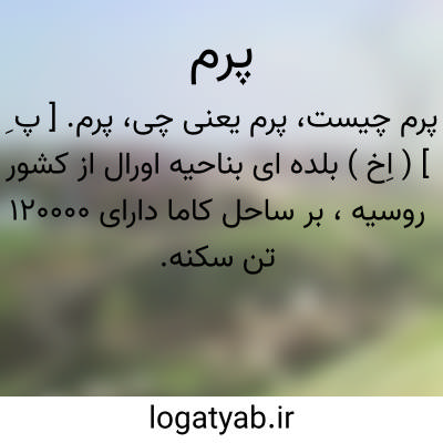 پرم. [ پ ِ ] ( اِخ ) بلده ای بناحیه اورال از کشور روسیه، بر ساحل کاما دارای 120000 تن سکنه.