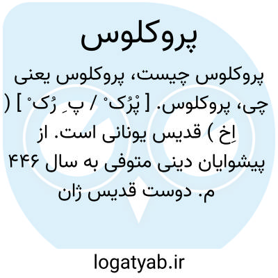 پروکلوس. [ پْرُک ْ / پ ِ رُک ْ ]( اِخ ) نام فیلسوف افلاطونی جدید متولد بسال 412 م. ومتوفی در 485 وی از مردم لیسی بود ولی در آنجا دیری نماند و به اسکندریه رفت و در مجالس درس اریون و لئوناس و هرون حاضر شد. در آتن از استاد خود سیریانوس جانشین پلوتارک پسر نسطوریوس استفاضه ای کرد. پروکلوس به سن چهل سالگی بجای سیریانوس به ریاست حوزه درس آتن قرار گرفت و بیش از سی سال در این مقام بماند. تعلیمات او یک نوع طریقه تصوف است که به بعض روایات تا حدی تحت تأثیر اعمال سحر و ساحری و اسرار الوزیس و عقائد کلدانی بوجود آمده هیچیک از حکماء اسکندرانی به اندازه وی به اعمال غریب سحری و دینی نپرداخته است. از تألیفات وی شرح معروف طیمأوس ( رساله افلاطون ) و شرح برمانیدس ( رساله افلاطون ) و شروح مهندسان قدیم است. قطعات تألیفات او را ویکتور کوزن جمع کرده و از سال 1819 تا 1827 م. نشر داده است.