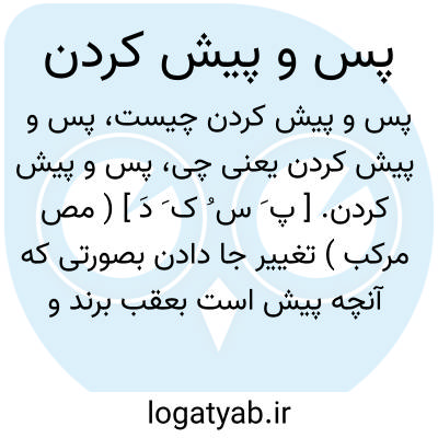 پس و پیش کردن. [ پ َ س ُ ک َ دَ ] ( مص مرکب ) تغییر جا دادن بصورتی که آنچه پیش است بعقب برند و عقب را پیش آرند. ||... مردم را برکنار کردن. به یکسو زدن راه جستن را.