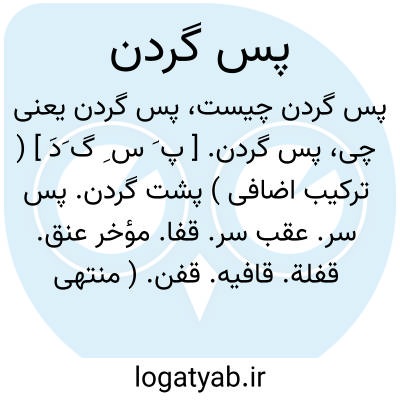 پس گردن. [ پ َ س ِ گ َدَ ] ( ترکیب اضافی ) پشت گردن. پس سر. عقب سر. قفا. مؤخر عنق. قفلة. قافیه. قفن. ( منتهی الارب ). قذال.